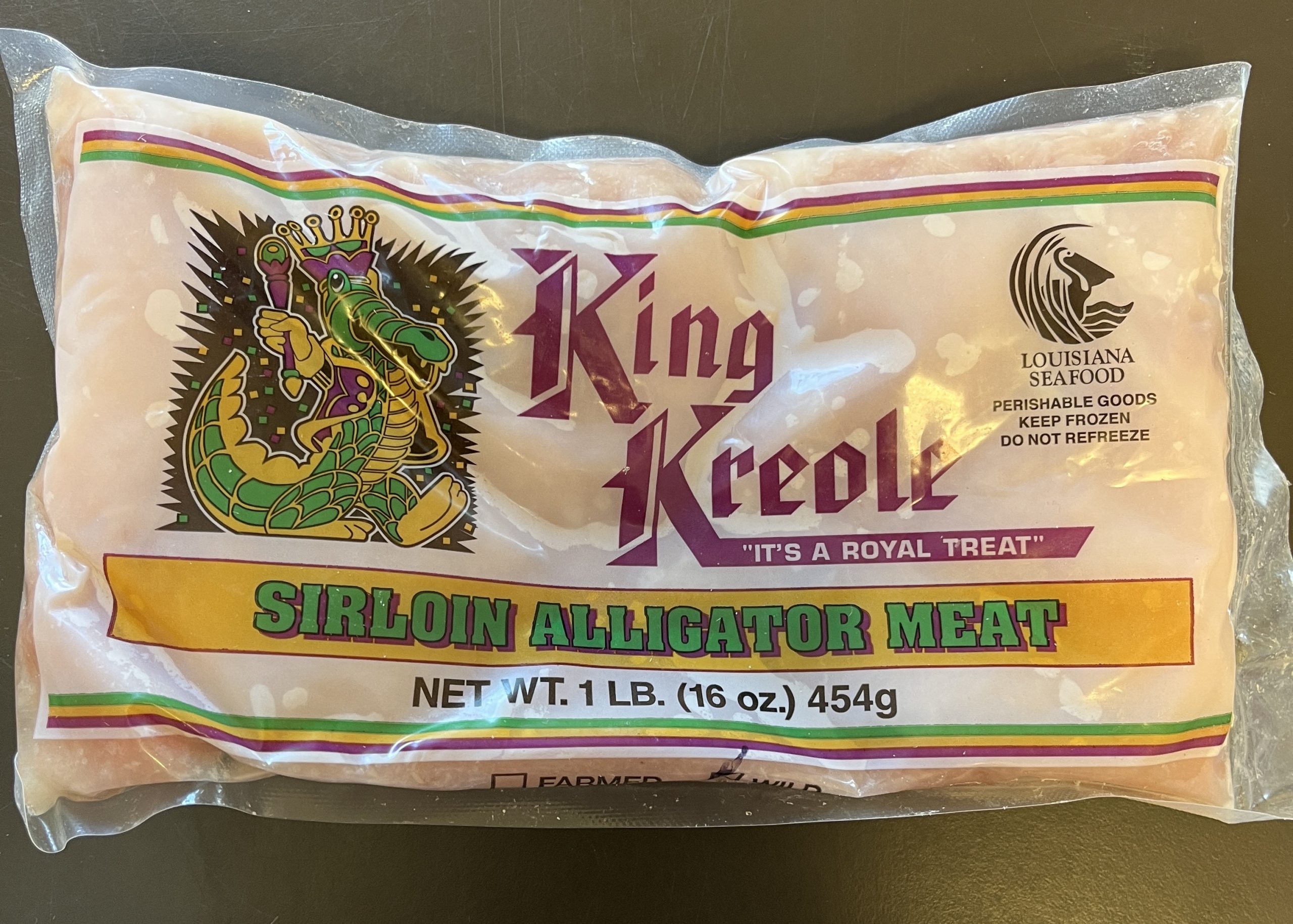 Description: Alligator Sirloin Meat (Tail Meat) 1lb Package. Wild Caught