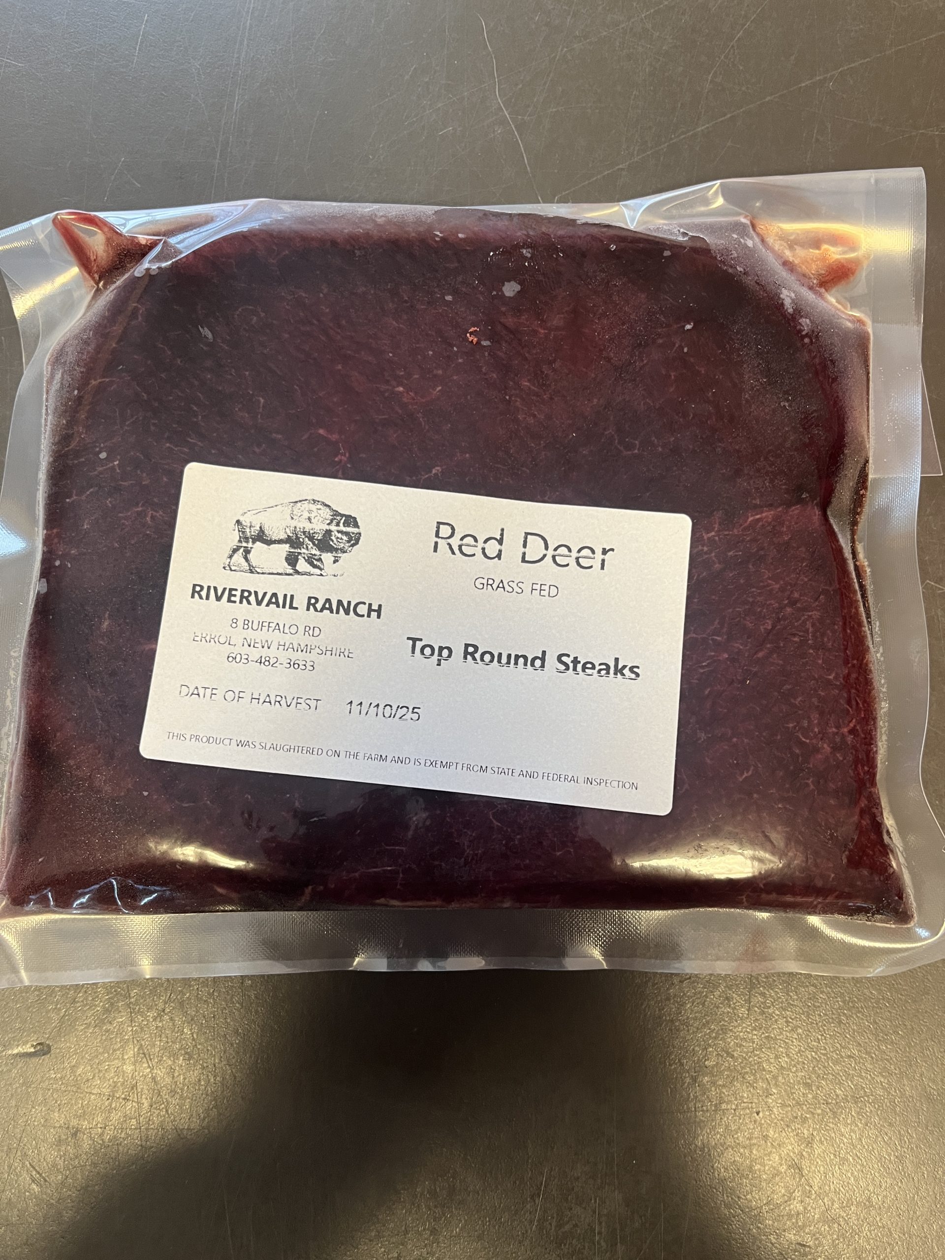 Red Deer Top Round Steak NH Raised 100% grass fed